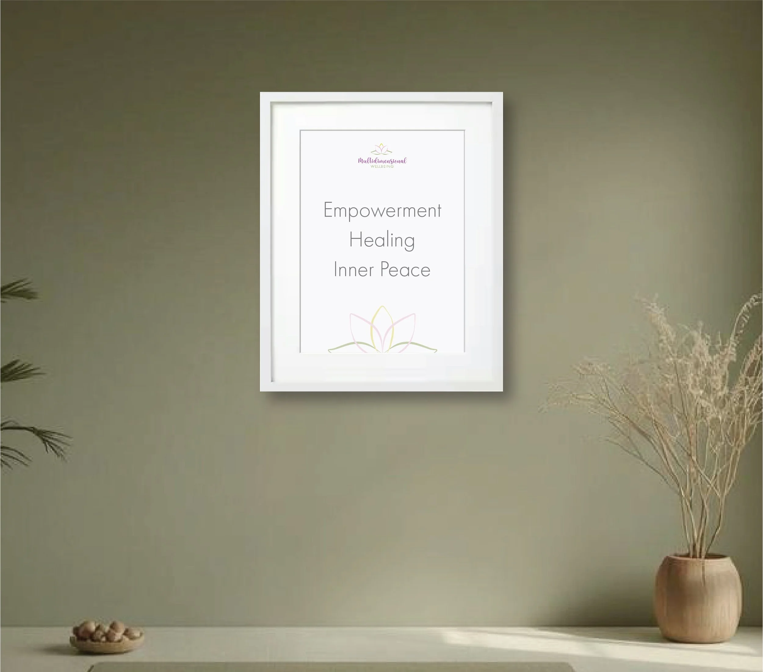 I design custom wall art in your new visual identity — featuring meaningful words, affirmations or guiding statements that resonate with your clients and reflect the heart of your work.